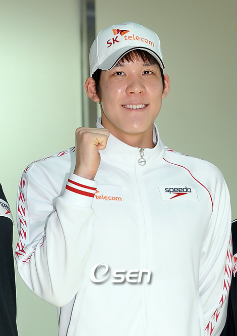 '마린 보이' 박태환(20)이 6주간의 미국 2차 전지훈련을 위해 16일 오후 인천공항을 통해 미국 LA USC(남가주대학교)로 떠난다. 박태환은 USC 수영팀의 데이브 살로 감독의 지도로 7월 로마에서 열리는 2009 세계선수권대회에서 자유형 400m 우승과 1500m 기록 단축을 목표로 한다. 기자회견을 마친 박태환이 취재진을 향해 포즈를 취하고 있다./인천공항=윤민호 기자ymh@osen.co.kr