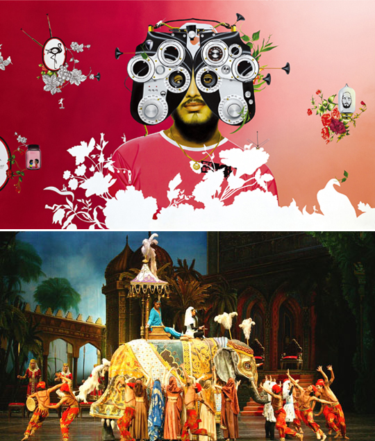 서울에 ‘인도’문화가 꽃을 피웠다. 인도 향이 물씬 풍기는 미술관 전시를 비롯해 무용과 연극 등 다양한 인도문화를 서울에서 만날 수 있게 됐다. 인도에 숨겨진 열정이 화려한 빈디와 맨발의 여인, 모래바람과 강한 태양으로 담겨져 있다. 그들의 신을 존재케 하고 인도인들의 삶을 그대로 옮겨 놓은 것 같은 새로운 문화의 소통이 한국을 이끌어 인도로 향하게 한다. 잇따라 서울 시내에서 막을 올리는 인도 공연과 전시가 과거 인도문명을 시작으로 급부상하고 있는 현대 인도문화까지 한 눈에 살펴볼 수 있는 좋은 기회다. [전시] 인도현대미술전 ‘세 번째 눈을 떠라’ 뜨거운 태양 아래 거대한 코끼리가 일어서고 있다. 찌는 듯 한 더위에 숨 막히는 습기, 그 속에 화려한 색채의 여인과 거대한 코끼리가 인도의 강한 인상을 남긴다. 과천 국립현대미술관은 17일부터 ‘인도현대미술-세 번째 눈을 떠라’전을 개최한다. 2009년 국제기획전으로 인도의 문화를 소개한다. 인도를 대표하는 수보드 굽타, 지티쉬 칼라트, 굴람모함메드 쉐이크, 아툴 도디야, 실파 굽타 등 인도의 30~70대 작가 27명 작가의 작품 110여점이 화려한 과거 문명국으로 알려진 인도에서 현대의 인도까지 펼쳐진다. 국내에서 열린 인도현대미술전으로는 최대 규모다. 이번 인도현대미술전시에 ‘세 번째 눈을 떠라’라는 제목을 붙였다. 올 초 일본 모리미술관에서 열린 ‘가자! 인도’전이 순회전시로 한국에 들어왔고 이어 오스트리아로 이어질 예정이다. 전시는 6월7일까지이며 전시기간 중 강연회와 다양한 인도 문화행사가 열린다. [무용] 인도무희의 열정 ‘라 바야데르’ 인도를 배경으로 한 열정적인 사랑과 배신, 구원의 드라마가 이국적인 화려한 무대로 펼쳐지는 발레 ‘라 바야데르(La bayadere)’가 17일부터 예술의 전당 오페라극장에서 화려한 막이 오른다. 유니버설발레단의 ‘라 바야데르’는 150여명 출연진의 화려한 춤의 향연이 웅장한 인도사원을 배경으로 2m 높이, 200㎏ 무게의 거대한 코끼리가 등장해 초대형 발레의 무대를 구성했다. 규모나 인원수, 무대연출에 있어 발레의 새로운 도전이었다. 무대 배경만큼이나 화려한 군무로 표현된 발레는 ‘초대형 블록버스터 발레’라는 역작의 이름을 남겼다. 아름다운 무희 니키아와 젊은 전사 솔로르, 왕의 공주 감자티 세 남녀의 사랑과 배신, 용서와 복수를 열정적이고 아름다운 3막의 무대로 담아낸다. 화려함이 넘치는 발레 ‘라 바야데르’는 불어로 ‘인도의 무희’라는 뜻을 지녔다. 신비롭고 동양적인 무대, 드라마틱한 남성미와 로맨틱한 여성미가 어우러져 순수하고 열정적인 사랑의 절정을 이룬다. [연극] 인도의 젊은 연출가, 셰익스피어 ‘리어’ 서울 대학로 아르코예술극장소극장에서 한국-인도-중국 연출가의 셰익스피어 작품을 비교하며 즐길 수 있는 ‘아시아연극연출가워크숍’이 열린다. 아시아의 젊은 연출가 세 사람이 셰익스피어 희곡을 자국의 문화적 성향에 맞게 재해석해 한 무대에 올린다. 한국의 연출가 김성노의 ‘사랑의 헛수고’(4.14-4.16)와 인도 라비 차우라베디의 ‘리어’(4.19-4.21) 중국 장광티엔의 ‘햄릿’(4.24-4.26) 등 세 편을 연이어 공연한다. 이 중 인도의 셰익스피어를 느낄 수 있는 라비 차우라베티의 ‘리어’는 19일부터 공연된다. 인도 ‘리어’는 대사를 지양해 다양한 신체의 움직임으로 파워풀한 공연을 선보인다. 인도 연극 ‘리어’는 모든 배신의 근원에 삐뚤어진 가치관들이 자리 잡고 있다는 사실을 제시한다. 잔인한 인간의 근성에 존재의 필요성에 대한 의문을 던지며 인도의 식민지 역사에 내제된 인도인의 근성도 담겨있다. jin@osen.co.kr 인도현대미술전 ‘세 번째 눈을 떠라’에 전시된 투크랄과 타그라의 ‘팬텀 IX-B’(2008년, 위)와 발레 '라 바야데르' 공연.