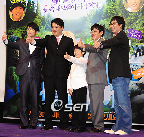 개그맨 이경규가 수입한 동물 영화 '리틀 비버'의 시사회가 20일 코엑스 메가박스에서 열렸다. 이 영화는 필립 칼드롱 감독이 캐나다의 쌩진의 호수에 세트를 만들어 촬영했다. 더빙에는 이경규와 친한 개그맨 유재석 김구라 이계인 왕비호 등이 참여했고 주인공 비버는 김구라의 아들 김동현이 맡았다. 이경규등 더빙 배우들이 포토타임을 갖고 있다./손용호 기자spjj@osen.co.kr