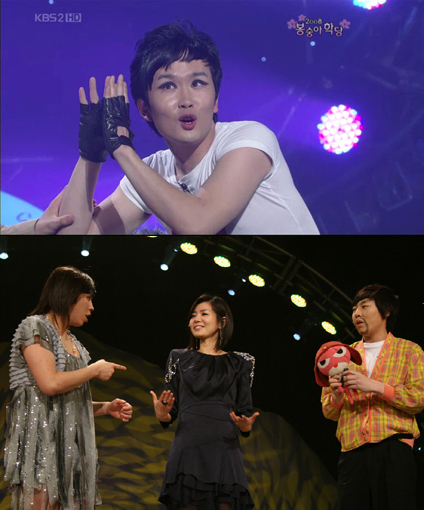 ‘개그콘서트’의 최고 인기 캐릭터였던 독설가 ‘왕비호’와 SBS ‘웃음을 찾는 사람들’ 인기 코너 ‘웅이 아버지’는 최근 스타 게스트들의 대거 출연으로 시청자들의 눈을 즐겁게 하고 있다. 하지만 게스트 출연은 개그에 양념으로 곁들여지는 게 아니라 언제부터인가 ‘메인’이 되면서 특유의 웃음 코드를 잃어 시청자들에게 실망을 안겨준다. ‘왕비호’ 캐릭터와 ‘웅이 아버지’ 코너에서 게스트가 중요한 수단이 된 건 오랜 시간 시청자들에게 노출되면서 아이템 고갈, 식상함 등의 문제에 직면하게 됐기 때문이다. ‘웅이아버지’는 2007년 10월 첫방송을 시작해 무려 1년 6개월 동안 방송되고 있다. 여장 남자인 웅이 어멈의 간드러지는 목소리와 애교, ‘웅이 아버지~’ ‘이리 오슈, 냉큼 오슈’, ‘멋져부러’ 등 감질맛나는 유행어, 왕눈이, 새로운 여장 남자 캐릭터 오봉이 등, 캐릭터, 유행어, 상황을 모두 갖춘 코너로 처음부터 관객들의 호응이 뜨거웠다. 하지만 1년 6개월이나 방송되면서 시청자들이 식상함을 느끼는 게 사실이다. 개그는 기본 포맷을 벗어나 다양한 상황 설정을 하지만 오히려 산만해 지고 있다는 느낌이 강하다. 그러나 제작 관계자는 “ ‘웅이 아버지’가 식상해 진 것은 사실이지만 아직 다른 코너들 중 ‘웃찾사’를 이끌어갈 만한 게 여의치 않다. 게다가 여전히 인기 코너이기 때문에 폐지한다면 프로그램에 타격이 크다”고 설명했다. 시청자들의 눈을 사로잡기 위한 하나의 방편이 스타 게스트를 매주 초대하는 것이다. 24일 방송에는 임창정이 나오며 그간 김C, 소녀시대, 장서희, 장윤정, 이영자, 슈퍼주니어, 김종국, 강타 등 쟁쟁한 스타들이 거쳐갔다. KBS 2TV ‘개그콘서트-봉숭아 학당’의 왕비호(윤형빈 분) 역시 스타 게스트들의 출연으로 개그를 이어가고 있다. ‘왕비호’는 2008년 4월 ‘봉숭아 학당’이 부화하며 수제자 노우진 캐릭터와 함께 남아 있는 캐릭터다. 당당한 ‘왕 비호감’ 외모와 스타들을 향해 조금 위험하지만 속 후련해지는 독설을 퍼부으며 주목 받았다. 하지만 왕비호의 개그에 ‘카타르시스’는 사라지고 ‘홍보’만 남은 지 오래다. 왕비호 독설이 홍보에 큰 영향을 미치자 영화 개봉, 앨범 발매, 책 발매, 연극, 뮤지컬 출연 등 다양한 홍보를 목적으로 한 스타들의 방문이 줄을 잇고 있다. 이제는 매회 2명의 스타가 방문하는 것은 기본이다. 결국 ‘웅이 아버지’와 ‘왕비호’ 개그는 초심을 잃고 궁여지책으로 스타 마케팅으로 통해 생명을 연장하고 있다. 하지만 스타 출연이 비일비재해지면 그마저 시청자들에게 외면받기 시작한 게 사실이다. 좀더 본질적인 변화와 과감한 결단이 필요한 때이다. miru@osen.co.kr