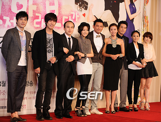 황정민, 김아중, 주상욱, 전미선, 이청아, 백성현, 김광규, 이수영이 출연하는 KBS 2TV '그저 바라 보다가' 제작발표회가 22일 서울 강남 노보텔 앰배서더 호텔에서 열렸다. 평범한 우체국 말단 직원 남자와 대한민국 최고의 여배우와 동화같은 6개월간의 스캔들을 담은 유쾌한 로맨틱 코미디 드라마이다. 출연진이 포즈를 취하고 있다./김영민 기자ajyoung@osen.co.kr