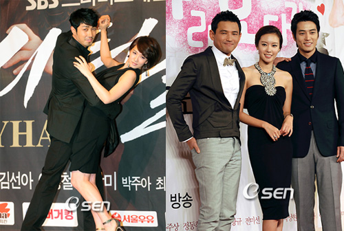 수목드라마 정상을 두고 경합을 벌였던 KBS 2TV ‘미워도 다시 한번’과 SBS ‘카인과 아벨’이 23일 동시에 종영했다. ‘미워도 다시 한번’이 2주 먼저 시작했지만 24부작 ‘미워도 다시 한번’과 20부작 ‘카인과 아벨’이 동시 종영하게 되면서 후속작 ‘그바보’와 ‘시티홀’이 같은 날 첫방송하며 다시 경합하게 됐다. 두 작품은 처음부터 시청률 경쟁이 뜨거웠다. 시청률 조사회사별로 수치 차이는 있어 AGB 닐슨미디어리서치에 따르면 ‘미워도 다시 한번’이 우세를 보이고 TNS미디어리서치코리아 조사결과 ‘카인과 아벨’이 우위를 점하는 등 차이를 보였지만 모두 10% 중후반대 시청률을 꾸준히 기록하며 시청률 가뭄 속에서 선전했다. 게다가 수십년간 불륜이었던 남편에 대한 복수, 동생을 죽이려했던 형에 대한 복수 등 복수에 대한 이야기를 핵심이 되는 등 최근 드라마 트렌드인 밝고 유쾌한 이야기보다는 다소 무겁고 진지한 이야기로 시청자들의 호응을 얻었으며 배우들의 열연이 돋보였다는 공통점도 갖고 있다. 후속작으로 편성된 KBS 2TV ‘그저 바라 보다가...’(이하 그바보)와 SBS ‘시티홀’은 유쾌한 코믹극으로 수목극 재대결에 나선다. ‘그바보’는 황정민 김아중 등 스크린 스타들의 브라운관 나들이로 많은 팬들의 기대를 모으고 있으며 톱스타로 분한 김아중과 어이없을 정도로 착하고 순진한 우체국 말단 직원 황정민의 이야기를 코믹한 터치로 그려낼 예정이다. ‘시티홀’ 역시 차승원이라는 스크린 스타의 오랜만의 안방극장 출연이라 눈길을 끈다. 게다가 코믹 연기의 대가 김선아와 호흡을 맞췄고 ‘온에어’ ‘연인 시리즈’ 등으로 히트 작품 제조기가 된 ‘신우철 PD-김은숙 작가’ 콤비의 차기작이라는 점에 기대가 크다. 7년 동안 9급 공무원을 전전하던 김선아가 대통령을 꿈꾸는 정치 야심가 차승원을 만나 ‘밴댕이 아가씨 선발대회’를 계기로 최연소 시장의 자리까지 오르는 스토리를 코믹하고 감동적으로 그려내겠다는 포부다. MBC 수목드라마 ‘신데렐라 맨’이 시청률 한자릿수를 헤어나오지 못하고 고전하는 만큼 ‘시티홀’과 ‘그바보’가 수목극 1위 자리를 놓고 또 다시 한번 경합을 벌일 것으로 예상된다. miru@osen.co.kr