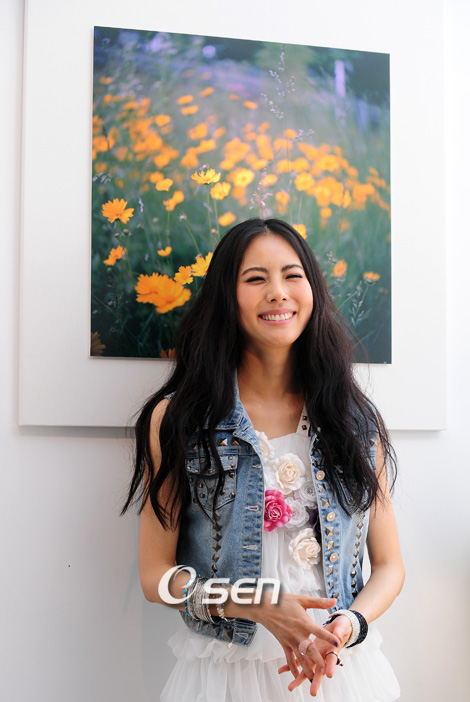 6년 만에 컴백한 가수 박지윤이 28일 오후 서울 청담동 데일리츠로젝트에서 7집 앨범 발표 기념 쇼케이스를 열었다. 박지윤은 쇼케이스를 통해 타이틀곡 '바래진 기억에'와 '봄,여름 그 사이' 등을 선보인다. 이번 쇼케이스는 자신이 직접 촬영한 사진으로 '꽃'이란 주제의 사진전도 갖는다. 7집 '꽃, 다시 첫번째'은 싱어송라이터로서 첫 번째 앨범 도전이다. 박지윤이 자신의 사진전 앞에서 환한 미소 지으며 포토타임을 갖고 있다./윤민호 기자ymh@osen.co.kr