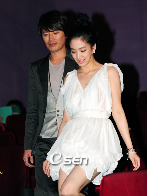 정재영 정려원이 주연한 영화 ‘김씨표류기’(감독 이해준) 시사회 및 기자간담회가 28일 오후 서울 왕십리 CGV에서 열렸다. '김씨 표류기'는 자살하려고 한강에 뛰어들었다 밤섬에 표류하게된 남자와 은둔형 외톨이로 방 안에서만 지내다 밤섬에 있는 남자를 발견하는 여자의 이야기이다. 정려원과 정재영이 기자간담회장으로 입장하고 있다./윤민호 기자ymh@osen.co.kr