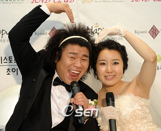 개그맨 오정태(33)의 반려자가 되는 예비신부 백아영(25)씨가 “오정태씨는 자상하고 잘생겼다”며 애정을 드러냈다. 오정태-백아영 예비부부는 5월 2일 서울 여의도 KT 컨벤션센터에서 결혼식을 올리기 직전 기자회견을 갖고 결혼을 앞둔 소감과 앞으로의 포부를 드러냈다. 두 사람은 5년 전 개그맨 김한석의 소개로 술자리에서 처음 만났다. 오정태는 당시를 회상하며 “나에게 반했는지 유독 예비신부가 나만 보고 웃더라”고 했지만 백아영 씨는 “정말 웃겨서 웃은 것인데 자꾸 오해한다”고 해명해 좌중을 웃음바다로 만들었다. 신랑의 매력을 묻는 기자들의 실문에 예비신부는 “일단 자상하고 잘 생겼다”며 애정을 과시했다. 오정태는 최근 예비신부가 임신 6주째에 접어들었음을 밝혀 화제가 됐다. “첫날밤이 첫날 밤이 아니다”고 농을 한 다음 “2세 태명이 으뜸이다. 아내와 태명이를 소중하게 아껴주겠다. 외모는 아내를 닮았으면 좋겠다. 미스코리아나 연예인이 되면 좋겠지만 운동선수를 시키고 싶다. 일단 골프를 가르치겠다. 제2의 박세리를 만들고 싶다”고 전했다. 이날 결혼식의 주례는 가수 송대관이, 박준형이 사회를 맡는다. 오정태는 “송대관 선생님은 가정적이고 자상하시다. ‘개그야-뭔말인지 알지’에서 3개월 같이 방송했는데 항상 주례해 달라고 부탁했다. 덕분에 엄마 친구분들이 많이 오셨다. 박준형은 옥동자(정종철), 오지헌까지 추남 전문 사회자라며 꼭 자신이 사회를 보길 원했다”고 말해 끝까지 웃음을 안겼다. 마지막 멘트로는 “개그야가 일요일 오후 4시대로 옮긴다. 많이 사랑해달라. 나는 영원히 ‘개그야’ 사람이다”며 ‘개그야’에 대한 애착을 드러내기도 했다. 노라조와 영턱스클럽의 박성현, 플라워의 고유진 등이 축가를 부르며 두 사람의 미래를 축복하며 개그맨 윤석주가 신혼여행 비용을 선물해 두 사람은 3일 태국 파타야로 3박 5일간 신혼여행을 떠난다. 신접살림은 서울 구로구에 있는 한 아파트에 차려진다. miru@osen.co.kr 민경훈 기자 rumi@osen.co.kr