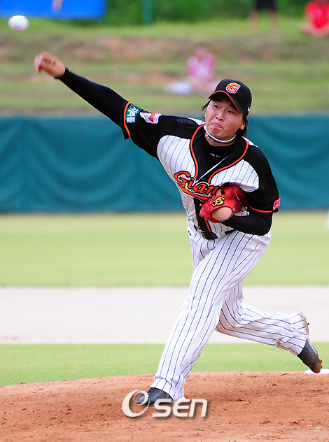 일부 광분한 팬들의 불미스런 행동으로 묻혀버렸지만 분명 눈에 띄는 피칭이었다. 롯데 우완 유망주 투수 이상화(21)가 인상적인 프로 데뷔전을 가졌다. 이상화는 지난 6일 사직 SK전에 선발 등판, 5⅓이닝 동안 7피안타 1볼넷 3탈삼진으로 2실점한 후 강판됐다. 총 99개의 투구수를 기록했고 직구구속은 최고 146km를 찍었다. 프로 데뷔 첫 타자였던 박재홍에게 좌전안타를 맞으며 '역시 신인'이라는 생각이 스쳐지나기도 전에 5회까지 실점하지 않았다. 3~5회는 9명의 타자를 삼자범퇴로 돌려세울 정도였다. 그러나 6회 내야진들이 흔들리면서 같이 무너졌다. 4연속 안타를 맞고 이정훈과 교체됐다. 이에 롯데로서는 괜찮은 선발감을 발굴했다는 점에서 이상화의 호투가 더욱 반갑다. 이상화의 등장은 선두를 달리고 있는 SK타선을 상대로 꿋꿋하게 버틴 것도 있지만 구멍난 선발 로테이션에 한 자리를 차지할 것이라는 점에서 숨통을 틔어주는 것이다. 롯데 선발진은 에이스 손민한의 복귀가 더딘 상태고 이용훈, 조정훈이 부상으로 엔트리에서 제외되는 등 힘겹게 버티고 있다. 김대우 카드는 실패했고 지금은 김일엽이 가세했다. 지난해 선발진 중에는 송승준과 장원준만 제 로테이션을 지켜내고 있을 뿐이다. 지난 2006년 경남고를 청룡기 정상에 올린 이상화는 2007년 1차 우선지명으로 롯데 유니폼을 입었다. 계약금을 2억 원이나 받을 만큼 기대를 모았다. 그러나 팔부상과 더불어 좀처럼 기량이 오르지 않아 2년 내내 2군에 머물러야 했다. 무엇보다 188cm의 키와 95kg의 몸무게에서 뿜어져 나오는 직구와 더불어 슬라이더가 위력적이었다. 이날 경기 해설을 맡은 이용철 KBS 해설위원은 "전체적으로 구위가 좋다"면서 "직구도 좋지만 특히 각이 짧으면서도 횡이 아닌 종으로 떨어지는 슬라이더가 인상적이었다"고 평했다. 로이스터 롯데 감독 역시 "신인 첫 등판치고는 대단한 피칭이었다"며 "우리팀 작전대로 타자를 잘 공략했다. 앞으로 필요한 선발 자원으로 기대된다"고 칭찬과 기대감을 동시에 드러냈다. 어렵게 기회를 잡은 이상화가 롯데 선발진의 한 축으로 연착륙에 성공할지 지켜 봐야 할 것이다. letmeout@osen.co.kr ▶ '깜짝 등장' 이상화, 롯데 선발진 숨통 ▶ [스토브 인터뷰] '우완 기대주' 이상화, "광민이와 함께 1군서 뛰고 싶다" ▶ 서정환, '이상화-전병두 선발 탈락' 경고 ▶ 이상화 200%-한기주 150%, 연봉 수직 상승 ▶ '관록' 송진우-'무명' 이상화, 준PO 3차전 격돌