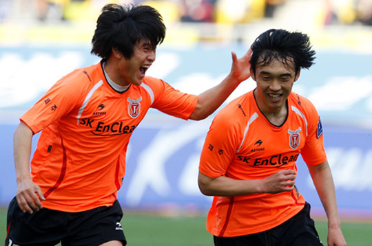 이적생 방승환이 5연패의 늪에 빠질 뻔 했던 제주 유나이티드를 구했다. 포항 스틸러스와 제주 유나이티드는 9일 포항 스틸야드에서 열린 2009 K리그 9라운드에서 두 골씩 주고 받은 채 2-2로 비겼다. 이에 따라 포항과 제주는 각각 7경기와 6경기 무승 행진 탈출에 실패했다. 이날 먼저 주도권을 잡은 쪽은 포항이었다. 지난 5일 호주의 센트럴코스트와 아시아축구연맹(AFC) 챔피언스리그 조별리그 H조 5차전에서 해트트릭을 수립하며 골가뭄에서 벗어난 데닐손은 제주전에서도 첫 슈팅을 터트리는 등 포항의 공격을 이끌었다. 그리고 전반 24분 데닐손은 왼쪽 측면에서 김기동이 올린 프리킥을 헤딩으로 선제골을 뽑아냈다. 기세가 오른 포항은 황진성과 유창현까지 살아나면서 제주를 두들겼다. 그러나 후반 들어 히카도와 오베라를 앞세워 만회골 사냥에 나선 제주의 반격도 매서웠다. 특히 오베라는 후반 7분 왼쪽 측면에서 빠른 스피드로 포항의 수비를 흔들어 김정겸의 자책골을 유도해 승부를 원점으로 되돌렸다. 제주는 후반 22분 김기동이 헤딩으로 내준 패스를 잡아챈 데닐손이 추가골을 뽑아내면서 다시 1-2로 뒤졌지만 비케라와 방승환을 투입해 동점골을 노렸다. 그리고 종료 직전 구경현이 올린 코너킥을 방승환이 헤딩으로 동점골을 터트렸고 경기는 2-2 무승부로 마감됐다. ■ 9일 전적 ▲ 포항 포항 스틸러스 2 (1-0 1-2) 2 제주 유나이티드 △ 득점 = 전 24 데닐손(포항) 후 7 김정겸(자책골, 포항) 후 22 데닐손(포항) 후 45 방승환(제주) stylelomo@osen.co.kr 방승환(오른쪽)=제주 유나이티드 제공.