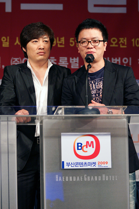 지난 14일 오전, ‘부산 콘텐츠 마켓(BCM)’이 열리고 있는 부산 그랜드호텔 2층에서 한류웍스(대표이사 김태연) 출범식이 열렸다. (주)한류웍스는 참신한 인재와 킬러 컨텐츠를 바탕으로 투명한 사업모델을 만들고자 출범한 컨소시엄 그룹. 엔터테인먼트 산업의 위기라고 불리는 이 시기를 순조롭게 헤쳐 나갈 본보기가 되고 합리적이고 투명한 제작, 유통을 바탕으로 한 한류의 세계화를 목표로 하고 있다. 이날 출범식에는 (주)컬트웍스 천범주 부사장, 한류문화교류재단 신현택 이사장, 부산광역시 문화체육관광국 김형양 국장과 컬투의 정찬우 김태균, 한국모델협회장 양의식, 모델 오미란 등이 참석했다. /OSEN=생활경제팀 osenlife@osen.co.kr