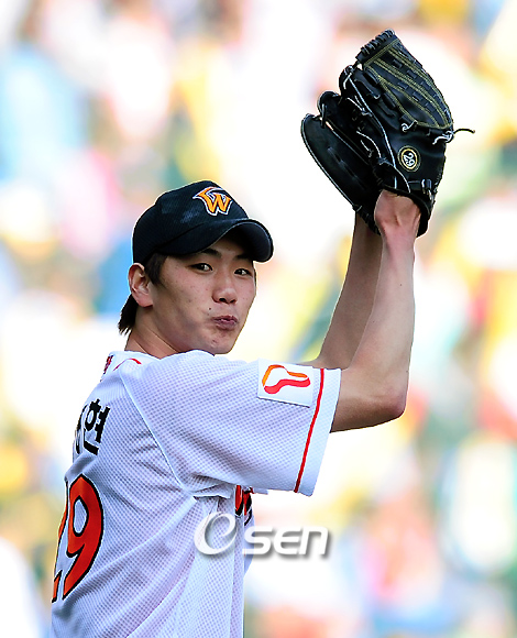 '2009 CJ 마구마구 프로야구' SK 와이번스와 KIA 타이거즈의 더블헤더 첫 경기가 17일 문학야구장에서 벌어졌다. KBO는 올 시즌부터 주말 경기때 우천 취소된 경기 가운데 한 경기를 월요일에 치르는 제도를 도입했다가 현장 감독들의 반발로 지난 15일 주말 경기 부터 월요일 경기를 없애고 더블헤더로 대체했다. 더블헤더는 2006년 10월 1일 광주에서 KIA-롯데 전 이후 3년여 만에 벌어졌다. 4-3으로 완투승을 거둔 김광현이 팬들에게 인사를 하고 있다./인천=손용호 기자spjj@osen.co.kr