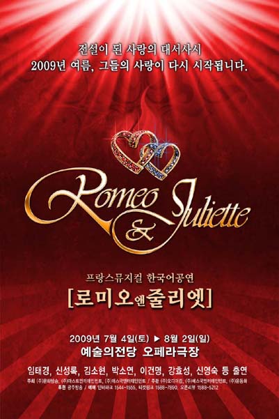 프랑스 뮤지컬 ‘로미오 앤 줄리엣’이 세계 최초로 한국어판 라이선스 공연이 펼쳐진다. 오는 7월 4일부터 8월 2일까지 예술의 전당 오페라극장에서 공연되는, 한국 배우에 의한 한국어 대사로 된 ‘로미오 앤 줄리엣’이다. 이번 공연의 오리지널판은 윌리엄 셰익스피어 원작을 바탕으로 프랑스어권 최고의 작곡가 제라르 프레스귀르빅(Gerard Presgurvic)이 2001년 제작한 프랑스 뮤지컬의 걸작이다. 지난 2007년 프랑스 오리지널 제작진과 캐스트로 구성된 한국 첫 공연이 있었고 지난 2월에는 앙코르 공연도 열렸다. 지금까지 단 한 번도 프랑스어 외의 라이선스 공연이 제작된 적이 없었을 정도로 자존심 강한 ‘로미오 앤 줄리엣’이지만 한국어에 그 빗장을 풀었다. 로미오 역에는 ‘햄릿’ ‘지저스 크라이스트슈퍼스타’ 등에서 최고의 뮤지컬 배우임을 증명한 크로스오버 테너 임태경과 무대와 브라운관을 넘나들며 다양한 매력을 발산하고 있는 신성록이 캐스팅 됐다. 그리고 카리스마와 가창력을 겸비한 디바 김소현, 성악과 출신 뮤지컬 배우로 ‘화성에서 꿈꾸다’ ‘색즉시공’으로 주목 받으며 제 ‘2의 김소현’이라 불리는 박소연이 줄리엣 역을 맡는다. 벤볼리오 역에는 14년 경력의 믿음직스러운 배우 이건명이, 레이디 캐플렛과 몬테규 역에는 신영숙과 강효성이 각각 캐스팅 됐다. 여기에 22인의 전문댄서들을 선발, 프랑스 오리지널 팀이 보여준 웅장한 군무 역시 그대로 재현한다. ‘로미오 앤 줄리엣’ 한국어 공연은 김덕남 씨가 연출을, 김문정 씨가 음악 감독을 맡아 시공을 초월한 감동을 준비하고 있다. 100c@osen.co.kr