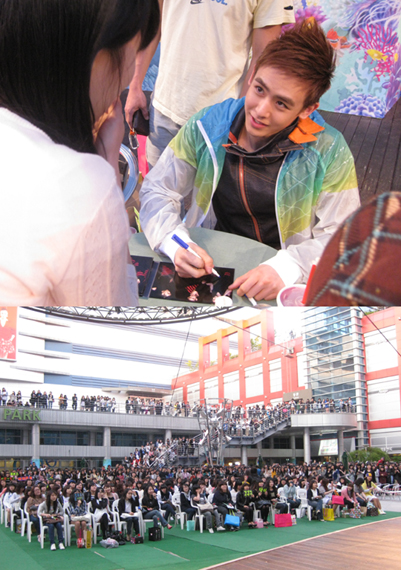 '어게인 앤 어게인'(Again & again)으로 지상파 음악 프로그램에서 2주 연속 1위를 거머쥔 2PM이 17일 오후, 용산 신나라 레코드에서 팬들과 함께 사인회를 가지며 즐거운 시간을 보냈다. 2PM이 새로운 싱글로 활동을 시작한 후 처음 진행된 이번 팬사인회는 앨범을 구입한 사람 중 추첨을 통해 선정된 150여명을 상대로 오후 7시부터 약 한 시간 반 가량 이뤄졌다. 사인을 받기 위해 참석한 팬들은 물론, 2PM을 보기 위해 현장을 찾은 600여명의 팬들의 함성 속에 2PM은 어느 때 보다 행복한 시간을 가졌다. 특히 이날은 2PM이 SBS '인기가요'에서 2주 연속으로 뮤티즌 송을 수상한 직후에 마련된 자리라 행사 내내 팬들의 축하가 끊이지 않았다. 팬들의 열렬한 응원에 2PM 멤버들은 즉석에서 '어게인 엔 어게인' 노래와 춤을 선보여 뜨거운 호응을 얻었다. 팬들과 즐거운 시간을 보낸 2PM은 “항상 우리를 응원하고 사랑해 주는 팬 분들과 가깝게 만날 수 있는 팬 사인회를 기다렸는데 특히 이번에는 지상파 2주 연속 1위의 기쁨을 가장 먼저 팬들과 함께 할 수 있어서 너무 행복했다”고 기쁜 마음을 전했다. 이어 “2PM을 믿고 사랑해 주는 팬들에게 다시 한번 감사인사를 전하며 언제나 최선을 다하는 2PM이 되겠다”고 전했다. 2PM의 사인회는 19일 코엑스, 24일 잠실 등에서 계속된다. happy@osen.co.kr JYP 엔터테인먼트 제공.
