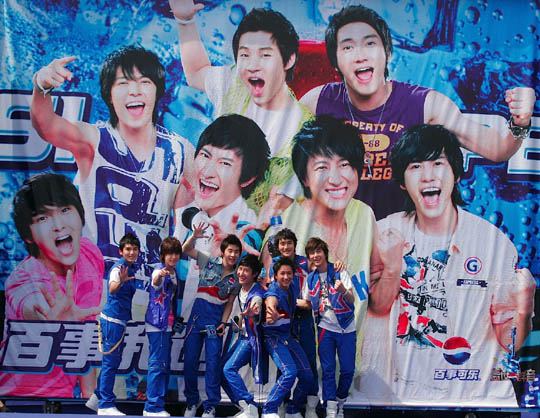 펩시콜라의 중화권 모델로 발탁된 슈퍼주니어-M이 ‘2009 펩시 광고 제작발표회’에 참석해 중국 취재진의 뜨거운 관심을 받았다. 지난 19일 오후 2시(현지시각), 중국 베이징 패션의 중심지 ‘D PARK 751 야외광장’에서 열린 ‘2009 펩시콜라 광고 제작발표회’에는 슈퍼주니어-M을 비롯해 구티엔러(古天樂/홍콩), 차이이린(蔡依林/대만), 황시아오밍(黃曉明/중국), 루오즈샹(羅志祥/대만), 이준기 등 펩시의 모델로 활동하고 있는 아시아 인기스타 12명이 총출동, 200여 취재진의 열띤 취재경쟁이 펼쳐졌다. 특히, 2009년 새 펩시광고와 촬영스케치, 제품 패키지 등을 공개한 이번 행사는 현장 전체를 대규모 펩시공장으로 꾸미고 모델들을 펩시운송팀으로 등장시킨 독특한 컨셉트로 눈길을 끌었다. 슈퍼주니어-M은 첫 번째로 무대에 등장해 전체 공장을 가동시키는 역할을 맡아 이목을 집중시켰다. 행사장 주변은 아침 일찍부터 슈퍼주니어-M 멤버들의 이름이 적힌 각종 플래카드와 사진을 들고 모여든 팬들로 북새통을 이뤘다. 슈퍼주니어-M에 대해 홍콩의 인기배우 구티엔러는 “광고 촬영할 때 슈퍼주니어-M과 즐거운 추억을 많이 쌓았는데 다시 만나니 더욱 친근하고 반갑다. 새로운 펩시의 가족이 된걸 진심으로 환영한다”고 말했다. 대만 최고 여가수 차이이린은 “슈퍼주니어-M과 함께 모델로 활동하게 돼 기쁘다”며 반가운 마음을 전했다. 한편, 슈퍼주니어-M의 얼굴이 새겨진 펩시콜라와 슈퍼주니어-M이 출연한 새로운 이 광고는 6월 1일부터 중화권에서 공개된다. happy@osen.co.kr SM엔터테인먼트 제공.