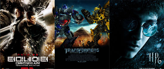 2009년 블록버스터 3파전의 서막이 시작됐다. 역대 최강 터미네이터의 탄생을 예고한 영화 ‘터미네이터: 미래 전쟁의 시작’이 오는 21일 개봉을 앞두고 60%에 달하는 압도적인 예매율을 기록하며 흥행 포문을 열었다. 이어 ‘트랜스포머: 패자의 역습’과 ‘해리포터 혼혈왕자’가 잇달아 개봉하면서 올 여름 블록버스터 흥행 최강자는 누가 될 것인지 관심이 고조되고 있다. ‘터미네이터: 미래 전쟁의 시작’은 심판의 날 이후 인류를 구하기 위해 고군분투하는 인간 저항군과 최첨단 기술을 탑재한 터미네이터 군단의 사상 최대 전쟁을 그린다. 총 2억 달러의 제작비가 투입된 것은 물론 최고의 배우, 최강의 제작진, 초호화 볼거리로 블록버스터의 혁명을 예고하고 있다. 스타일부터 스피드, 스케일에 이르기까지 초호화 스펙터클을 선보일 예정이다. 영화 ‘트랜스포머: 패자의 역습’은 6월 24일 개봉을 앞두고 있다. 인류를 지키려는 오토봇 군단과 인류를 파괴하려는 디셉티콘 군단의 총력적을 그린다. 더욱 다양해진 트랜스포머들이 등장해 한계가 없는 변신과 놀라운 합체 장면 등을 보여줄 것으로 기대되고 있다. 무엇 보다 ‘트랜스포머: 패자의 역습’은 전편이 이룬 경이적인 흥행 성적을 이번에도 이어갈 수 있을지 귀추가 주목되고 있다. 전세계가 기다리는 판타지 블록버스터의 주역 ‘해리포터와 혼혈왕자’는 7월 15일에 개봉할 예정이다. 볼드모트의 영혼을 나누어 놓은 7개의 호크룩스를 파괴하는 미션을 위해서 대장정의 길을 나선 해리포터의 기억여행을 그린 작품이다. 시리즈의 대단원을 향한 첫 번째 관문으로 본격적인 대결과 시리즈 사상 최고의 스릴, 가장 극적인 반전 등을 예고하며 벌써부터 화제를 모으고 있다. crystal@osen.co.kr