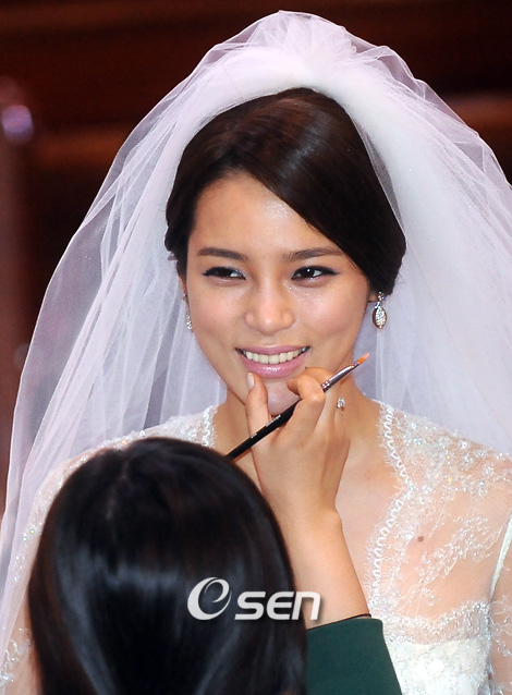 박용하 김강우 박시연 한여운이 출연하는 KBS 월화드라마 ‘남자이야기’(연출 윤성식, 극본 송지나) 현장공개가 21일 경기도 수원시 권선구 권성동 성모 승천성당에서 열렸다. '남자이야기'는‘돈’이 지배하는 정글 같은 세상에 맞짱을 뜨는 남자 김신(박용하 분)과 그 세상을 가지려는 악마성을 지닌 천재 채도우(김강우 분)의 대결을 그린 드라마이다. 현장공개는 김강우와 박시연의 결혼식 장면과 이를 지켜보는 박용하, 한여운의 장면이 진행됐다. 현장공개에서 박시연이 화장을 고치고 있다./수원=윤민호 기자ymh@osen.co.kr