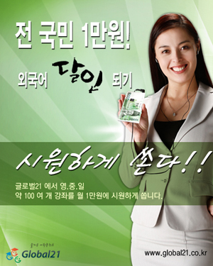 월 1만 원으로 영•일•중 100여 개 온라인 강좌 수강 가능 즐거운 어학충전소 글로벌21(www.global21.co.kr)이 영•일•중 약 100여 개의 강좌를 월 1만 원에 마음껏 학습할 수 있는 ‘전국민 1만원! 외국어 달인 되기’ 이벤트를 벌이고 있다. 글로벌21(대표 김용부)이 지난 25일부터 오는 7월 31일까지 2개월간 진행하는 이번 이벤트는 타 외국어 교육사이트의 수강 비용이 한 강좌당 5만~8만 원임을 고려할 때 파격적인 수강료로 학습이 가능하다. 이 밖에도 글로벌21은 이벤트 기간 동안 강좌 후기를 남긴 수강생 중 추첨을 통해 넷북, 닌텐도 게임기 등 푸짐한 선물을 증정하는 경품 이벤트를 실시하고 더불어 전국 글로벌어학원 36개 지점 어디에서나 수강할 수 있는 8개월 수강권(86만 원 상당), 4개월 수강권(48만 원 상당)을 증정하는 ‘나도 장학생’ 이벤트도 동시에 진행한다. 글로벌21 사이트를 운영하는 ㈜글로벌C&R은 전국 17개 도시, 36개 지사를 운영하는 글로벌어학원의 자회사로 현재 150여 개 기업 및 공공기관에 영/일/중 사이버 교육을 실시하고 있는 온라인 외국어 교육업체이다. ㈜글로벌C&R은 U러닝 기반의 블랜디드러닝 시스템을 바탕으로 200여 개 기업 및 단체의 이러닝, 모바일, 블랜디드러닝 등 콘텐츠 개발, 글로벌 핵심인재 양성사업을 전개하고 있다. 문의 02-565-7375. [OSEN생활경제팀 osenlife@osen.co.kr