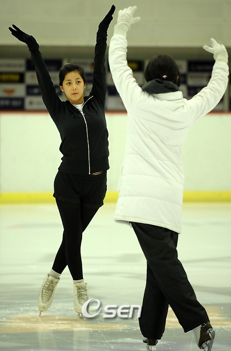 Mnet 스포츠 리얼리티 프로그램 '아이스 프린세스'에서 피겨 스케이트에 도전하고 있는 가수 솔비가 27일 안양 종합 운동장 내 빙상장에서 피겨연습현장을 공개했다. 솔비는 지난 17일 전주 실내 빙상 경기장에서 열린 '제 18회 문화 체육 관광부 장관기 국민 생활 체육 전국 스케이팅대회'에 일주일간 집중 훈련 끝에 출전했고 이 출전기는 내달 12일 밤 12시 케이블 채널 엠넷을 통해 방송된다. 솔비가 빙상장에서 코치와 함께 포즈를 연습하고 있다./안양=민경훈 기자 rumi@osen.co.kr