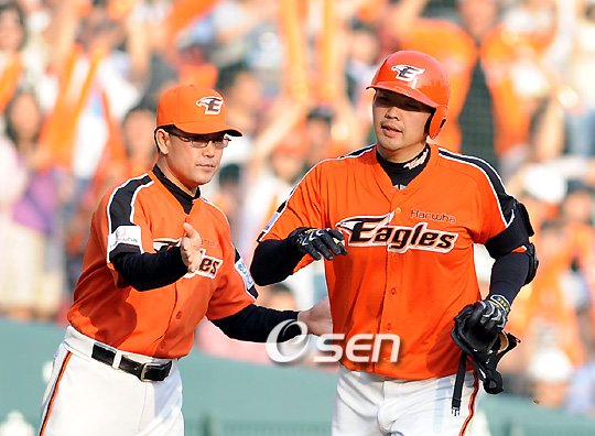 한화 이글스 거포 김태완(25)이 홈런 2방을 터트리며 부진 탈출을 예고했다. 최근 5경기에서 2할1푼1리(19타수 4안타)로 주춤했던 김태완은 27일 청주구장에서 열린 삼성과의 경기에 3번 지명 타자로 나서 홈런 2방을 포함, 3타수 2안타 3타점 3득점으로 승리를 견인했다. 1회 1사 주자없는 가운데 첫 타석에 들어선 김태완은 삼성 선발 배영수의 140km 짜리 직구를 받아쳐 우중월 솔로 아치(비거리 115m)를 쏘아 올렸다. 2-1로 앞선 3회 선두 타자 연경흠의 우익선상에 떨어지는 2루타로 만든 무사 2루 추가 득점 찬스에서 강습 타구를 날렸으나 삼성 3루수 박석민의 글러브에 빨려 들어갔다. 아쉬운 표정을 지으며 1루 덕아웃으로 돌아갔던 김태완은 5회 볼넷으로 출루한 뒤 이영우 타석 때 2루 베이스까지 훔쳤다. 이어 디아즈의 중월 투런 홈런 때 홈을 밟아 두 번째 득점을 올렸다. 6회 2사 1루에서 삼성 세 번째 투수 조현근의 높은 체인지업(121km)을 받아쳐 좌중간 펜스를 넘기는 110m 짜리 투런 아치로 연결시켰다. 올 시즌 13호째 홈런. 김태완은 8회 2사 1,2루 득점 찬스에서 볼넷을 골라 1루 베이스를 밟았다. 이날 2개의 아치를 보탠 김태완은 홈런왕 경쟁 후보로 급부상했다. '토종 거포' 김태균이 어지럼증을 호소하며 기대 이하의 모습을 보이고 있는 가운데 김태완의 선전은 가뭄 속 단비 만큼 반가운 소식이 아닐 수 없다. what@osen.co.kr