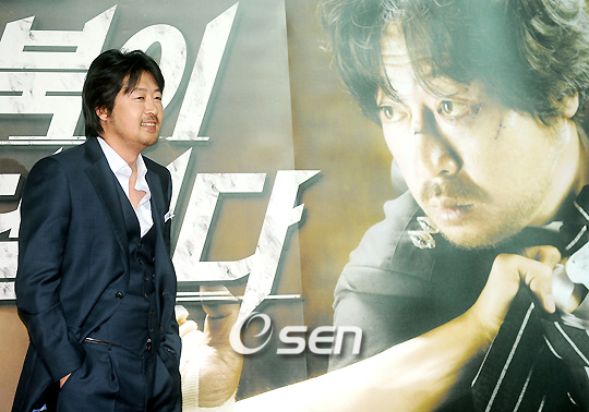 김윤석 정경호가 주연한 영화 ‘거북이 달린다’(이연구 감독) 시사회 및 기자간담회가 1일 오후 서울 동대문 메가박스에서 열렸다. '거북이 달린다’는 범죄 없는 조용한 마을 충청남도 예산을 배경으로 어느날 갑자기 나타난 신출귀몰한 탈주범(정경호 분)에게 모든 것을 빼앗긴 시골형사 조필성(김윤식 분)의 질긴 승부를 그린 농촌 액션이다. 기자간담회에 참석한 김윤석이 포토타임을 갖고 있다./윤민호 기자ymh@osen.co.kr