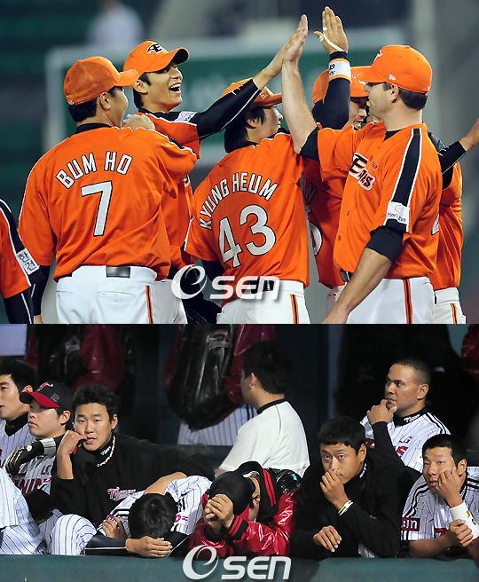 [OSEN=박종규 객원기자] 이틀에 걸친 판박이 승부, 양 팀의 문제점이 두 번이나 거듭되는 결과를 낳았다. LG 트윈스와 한화 이글스는 지난 2일과 3일 경기에서 보기 드문 상황을 연출했다. 두 경기 모두 11-10의 스코어를 기록한 것이다. 단지 숫자가 일치했다는 것보다는 두 경기 모두 과정이 비슷했다는 점에서 주목된다. 마치 데자뷰 현상과도 같았다. 두 경기에서 공통적으로 볼 수 있었던 패턴은 '먼저 앞서가는 한화, 턱밑까지 추격하는 LG'였다. 한화는 2일 경기에서 한때 9-1까지, 3일 경기에서 10-6까지 달아났다. 그러나 올시즌 무서운 뒷심을 발휘하고 있는 LG에 9회말 1점차까지 쫓기고 말았다. 경기가 마무리되는 과정도 비슷했다. 1점차까지 추격하며 동점을 코앞에 두었던 LG는 2일 2사 1,2루에서 김태완의 삼진으로, 3일 2사 2, 3루에서 최동수의 파울뜬공으로 무릎을 꿇었다. LG에게는 아쉬움만 두 배로 쌓이는 결과였다. 한화는 이틀 연속으로 ‘무섭게 쫓기는 꿈’을 꾼 셈이다. 경기 후반까지 리드를 이어오다가 깔끔한 뒷문 단속을 못한 점이 현재 팀 사정을 말해준다. 믿었던 양훈-마정길-토마스 라인이 2일 7실점, 3일 5실점으로 불안했다. LG의 경우에는 '결실을 보기 직전에 꿈에서 깨어난' 셈이다. 지난달 12일 잠실 SK전, 지난달 21일 광주 KIA전에서도 역전을 눈앞에 두고 주저앉은 LG는 2일과 3일 경기에서 끝내 1점차를 극복하지 못했다. 연장전에 단련되어 있는 선수들이기에 승부가 길어질수록 유리할 수도 있었다. 그러나 현실은 '석패' 였다. 물론 LG도 뒷문 단속이 제대로 되지 않은 것은 마찬가지. '만약 9회초에 실점을 안했더라면'이라는 가정이 아쉽게 다가온다. 야구는 끝까지 모른다는 사실을 몸소 체험한 LG는 앞으로 어떤 경기도 포기하지 않고 실점을 최소화해야 하는 과제가 생겼다. 결과적으로는 2연승으로 탈꼴찌에 성공한 한화와, 5연패에 빠지며 4강권에서 점점 멀어지는 LG의 희비가 극명하게 엇갈렸다. 비록 두 팀 모두 문제점을 드러냈지만, '1-0이나 11-10이나 이기고 지는 건 마찬가지다'는 식의 사고방식이라면 한화가 살포시 미소를 지을 수 있지 않을까.