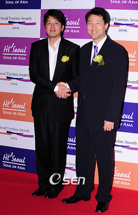 2009 서울관광대상(Seoul Tourism Awards 2009) 시상식 및 기자회견이 4일 오후 서울 신라호텔 에메랄드룸에서 열렸다. 서울관광대상에는 최고 공로자, 서울관광 언론인, 서울관광 연예인, 관광상품, 관광기업, 온라인 분야, 컨벤션, 관광 서비스 등 8개 부문 17개 본상에 걸쳐 시상이 이뤄진다. 수상자 중 류시원은 대표적인 한류스타로 한국을 지속적으로 알려온 점이 인정돼 최우수 서울 관광 연예인 상에 선정됐으며, 일본에 한국화장품 열풍을 일으킨 메이크업 아티스트 겸 방송인 잇코(본명 도요타 가즈유키)와 공동 수상의 영예를 안았다. 서울관광대상에는 송승헌과 배용준이 출연한 드라마 '가을동화'와 '겨울연가'를 연출한 윤석호 PD도 수상자 명단에 올랐다. 류시원과 오세훈 서울시장이 포토월에서 악수를 나누며 포토타임을 갖고 있다. /민경훈 기자 rumi@osen.co.kr