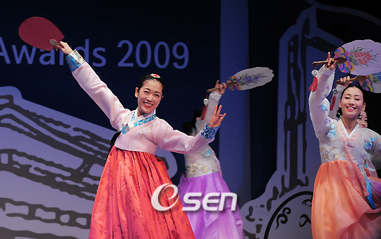 2009 서울관광대상(Seoul Tourism Awards 2009) 시상식 및 기자회견이 4일 오후 서울 신라호텔 에메랄드룸에서 열렸다. 서울관광대상에는 최고 공로자, 서울관광 언론인, 서울관광 연예인, 관광상품, 관광기업, 온라인 분야, 컨벤션, 관광 서비스 등 8개 부문 17개 본상에 걸쳐 시상이 이뤄진다. 수상자 중 류시원은 대표적인 한류스타로 한국을 지속적으로 알려온 점이 인정돼 최우수 서울 관광 연예인 상에 선정됐으며, 일본에 한국화장품 열풍을 일으킨 메이크업 아티스트 겸 방송인 잇코(본명 도요타 가즈유키)와 공동 수상의 영예를 안았다. 서울관광대상에는 송승헌과 배용준이 출연한 드라마 '가을동화'와 '겨울연가'를 연출한 윤석호 PD도 수상자 명단에 올랐다. 중간 축하공연으로 '화관무'가 펼쳐지고 있다. /민경훈 기자 rumi@osen.co.kr