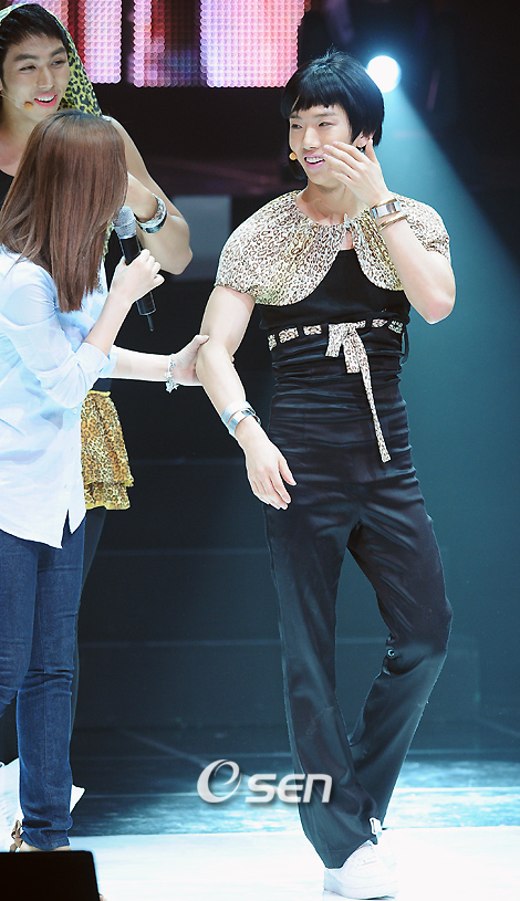 감미로운 하모니와 폭발적인 가창력으로 뜨거운 사랑을 받고 있는 4인조 남성 그룹 '2AM'이 6일 오후 서울 마포 아트센터 아트홀 맥에서 팬 미팅을 가졌다. 2008년 '이 노래'로 데뷔해 2009년 '친구의 고백'으로 큰 사랑을 받은 2AM이 팬들과 함께하는 첫 번째 팬 미팅이라 더욱 의미 있는 이번 행사는, 2AM의 팬클럽 'I AM'의 회원 중 선정된 300여명을 초청, 다양한 이벤트와 무대를 통해 팬들과 하나되는 시간을 마련했다. 특별게스트로 초대된 원더걸스 중 예은이 원더걸스로 변장한 2AM의 조권을 보고 놀라고 있다./민경훈 기자 rumi@osen.co.kr