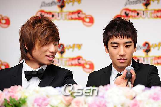 인기그룹 빅뱅의 대성(20)과 승리(19)가 주연으로 출연하는 뮤지컬 '샤우팅'의 제작발표회가 12일 오전 서울 중구 소공동 롯데호텔에서 열렸다. 대성과 승리는 오는 8월 8일부터 서울 서초동 한전아트센터에서 막을 올리는 뮤지컬 '샤우팅(SHOUTING)'에서 연예인 지망생 동료로 출연한다. 이 뮤지컬은 스타가 되려는 두 주인공의 꿈과 희망, 노력, 성공을 다룬 내용으로, 수많은 청소년이 연예인이 되고자 하는 시대상을 담고있다. 지난해 '캣츠'와 '소나기' 각각 성공적인 데뷔무대를 가진 대성과 승리의 차기작이기에 관심이 쏠리고 있으며, 인기 뮤지컬 배우 홍지민과 주원성도 함께 출연한다. 기자회견중 대성이 승리의 마이크를 낮춰주고 있다./민경훈 기자 rumi@osen.co.kr
