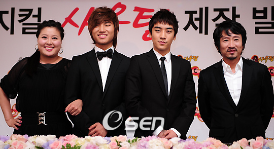 인기그룹 빅뱅의 대성(20)과 승리(19)가 주연으로 출연하는 뮤지컬 '샤우팅'의 제작발표회가 12일 오전 서울 중구 소공동 롯데호텔에서 열렸다. 대성과 승리는 오는 8월 8일부터 서울 서초동 한전아트센터에서 막을 올리는 뮤지컬 '샤우팅(SHOUTING)'에서 연예인 지망생 동료로 출연한다. 이 뮤지컬은 스타가 되려는 두 주인공의 꿈과 희망, 노력, 성공을 다룬 내용으로, 수많은 청소년이 연예인이 되고자 하는 시대상을 담고있다. 지난해 '캣츠'와 '소나기' 각각 성공적인 데뷔무대를 가진 대성과 승리의 차기작이기에 관심이 쏠리고 있으며, 인기 뮤지컬 배우 홍지민과 주원성도 함께 출연한다. 홍지민 대성 승리 주원성이 포토타임을 갖고 있다./민경훈 기자 rumi@osen.co.kr