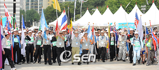 '6.25역사 바로알기’국민건강 걷기 대회가 27일 오전 서울 송파구 방이동 올림픽공원 평화의 광장에서 열렸다. 이번 행사는 올릭픽공원 평화의 광장에서 출발, 공원주변을 따라 7km 코스를 걷게 되며, 이 코스를 마친 참가자들에게는 완보증과 봉사증을 지급한다. 부대행사로는 6.25 영상 사진전, 호국보훈의 달 표어공모전 등이 진행되며 체지방 측정, 걷기자세 측정, 페이스 페인팅 등 참가자들이 참여할 수 있는 다양한 이벤트와 공연이 펼쳐진다. 행사에 참여한 시민들이 출발점을 나서고 있다./윤민호 기자ymh@osen.co.kr