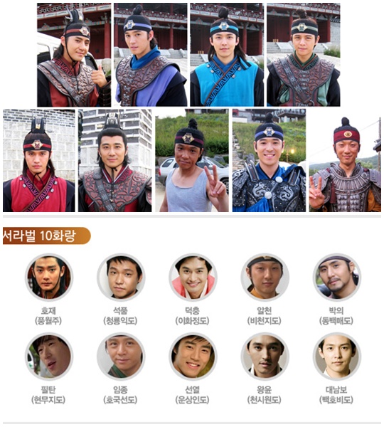 MBC 창사특집 ‘선덕여왕’에서 신라 국력 저장고의 역할을 자임하고 있는 화랑들에 대한 시청자들의 관심이 높아지고 있다. ‘선덕여왕’ 속의 매력남들로 등장하고 있는 서라벌 10화랑의 캐릭터 중에는 의외로 낯익은 인물들이 많다. 먼저 ‘에덴의 동쪽’에서 독사 역할로 송승헌을 보좌했던 고윤후는 화랑의 수장 풍월주 호재 역으로 선보이고 있다. 덕만(이요원 분)을 괴롭히면서 긴장감을 고조시키는 석품 홍경인도 반가운 얼굴로 오랜 만에 사극에 출연하며 브라운관에 복귀했다. 석품 라인에 줄을 선 이화정도의 덕충 역은 맛깔스러운 조연연기를 선보여온 서동원이 맡았다. 드라마 방영 9~10회를 통해 새롭게 부각된 알천 역의 이승효는 이준기를 닮은 외모와 인상적인 전투 장면으로 시청자들의 관심을 한 몸에 받고 있다. 선열 역에는 일명 ‘간고등어 코치’로 유명한 트레이너 최성조가 투입됐으며 화랑 왕윤 역에는 김혜수의 막내 동생 김동희가, 박의 역에는 ‘이산’에서 익위사 무사로 활약한 장희웅이 합류했다. 필탄 역에는 신인 이상현이 임종 역에는 ‘뉴하트’에 출연했던 강지후가 대남보 역에는 ‘신데렐라맨’에 출연했던 류상욱이 라인업을 완성 시켰다. 이들은 모두 10여대 1의 경쟁률을 통과해 서라벌 10화랑의 면모를 갖추게 됐다. 김영현 작가는 “당시 화랑이라는 집단은 군사적 리더 훈련 기관이자, 제사를 지내기도 하고 악기를 다루고 그림을 그리는 등 다양한 분야의 전천후 엘리트 양성소라 할 수 있다”며 “화랑의 모습을 시청자들은 신선하게 보실 수 있을 것”이라고 밝힌바 있다. 그 동안 ‘선덕여왕’에서는 화랑의 축제인 낭천제(화랑이 주축이 된 제천의식)가 본격적으로 소개되기도 하고, 화랑들이 얼굴에 무섭도록 짙은 분칠을 하면서 죽음을 불사한 결의를 표시하는 ‘낭장결의’같은 창의적 재해석의 모습도 그려져 화랑에 대한 관심도 높아지기 시작했다. 앞으로도 서라벌 10화랑은 적극적이고 활동적인 당시 화랑의 다양한 숨겨진 매력을 시청자들에게 선사할 것으로 알려져 기대를 모으고 있다. ricky337@osen.co.kr MBC 제공.