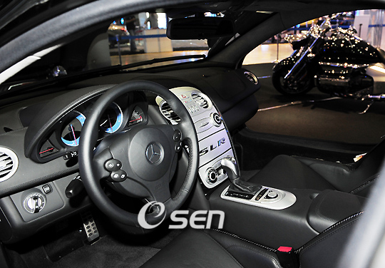 올해로 7회째를 맞는 국내 최대의 자동차 애프터마켓 및 튜닝 산업 전시회 '2009 서울오토살롱 with 모터스포츠(SAS 2009)'가 2일 서울 삼성동 코엑스 대서양홀에서 열렸다. 이 대회는 2일(목)부터 5일(일)까지 4일동안 세계적인 슈퍼카들과 여러 튜닝카, 그리고 아름다운 레이싱 모델들의 향연 속에 화려하게 개최된다. 벤츠 'SLR 맥클라렌'이 내부를 공개한채 전시되어 있다./민경훈 기자 rumi@osen.co.kr