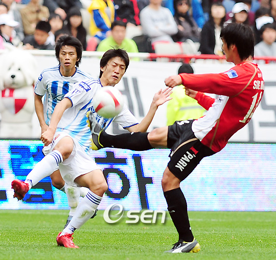 부산이 홈에서 서울에 강한 면모를 이어갈까. 부산과 서울은 오는 4일 부산아시아드주경기장에서 2009 K리그 14라운드 대결을 펼친다. 연패에 빠져 있는 부산과 1위 탈환을 노리는 서울은 절대 양보할 수 없는 상황. 홈팀 부산은 최근 2연패에 빠져 있다. 지난달 20일 정규리그가 재개된 뒤 대전 및 제주에 연달아 패하며 분위기가 가라앉았다. 하지만 갑작스럽게 컨디션 난조를 보이며 어려운 경기를 펼칠 수 밖에 없었다. 하지만 홈에서 서울에 강력한 모습을 보이는 부산은 배수의 진을 치고 있다. 지난 시즌 홈서 열린 서울과 경기서 모두 승리를 거두는 등 최근 5경기서 2승 3무로 무패행진을 이어가고 있다. 특히 4경기서는 무실점을 기록하는 등 홈에서 서울에 강한 모습을 보이고 있다. 따라서 부산은 이런 심리적 우위를 살려 기필코 승리를 거두겠다는 의지를 보이고 있다. 특히 정성훈이 부상에서 회복해 양동현과 최전방에서 호흡을 맞추고 있기 때문에 기대해 볼 만하다. 물론 서울의 기세도 무섭다. 지난 1일 FA컵 16강전에서 전북에 패해 잠시 주춤하게 됐지만 정규리그서는 4연승을 달리고 있다. 특히 '쌍용' 중 하나인 이청용은 최근 2경기 연속 공격 포인트를 기록하며 팀의 상승세를 이끌고 있다. 또 부산을 이긴다면 광주-전북전 결과에 따라 선두 탈환도 가능하기 때문에 FA컵서 탈락한 서울의 분발이 예상된다. 10bird@osen.co.kr 지난해 11월 2일 부산 아시아드 주경기장서 벌어진 서울-부산전.