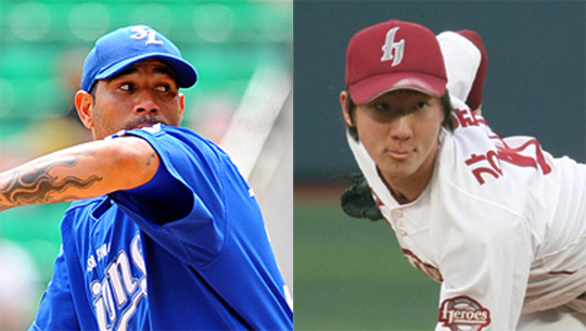 5위 히어로즈와 6위 삼성 라이온즈가 3일부터 대구구장에서 중위권 도약을 위한 한판 승부를 벌인다. 히어로즈는 신예 좌완 강윤구를 선발 예고했다. 장충고를 졸업한 뒤 히어로즈 창단 첫 1차 지명 선수로 입단한 강윤구는 올 시즌 선발과 중간을 오가며 1승 1홀드(방어율 5.35)를 기록 중이다. 최근 선발진의 한 축을 맡으며 안정된 투구를 선보이고 있다. 지난달 26일 KIA전에서 6회까지 볼넷 6개만 허용하며 무실점(8탈삼진)으로 호랑이 타선을 제압, 데뷔 첫 승을 따냈다. 올 시즌 삼성전에서 1⅓이닝을 던져 1탈삼진 무실점을 기록했다. 히어로즈는 올 시즌 삼성과의 상대 전적에서 5승 4패로 근소한 우위를 점한다. 최근 2연승을 내달리며 상승 곡선을 그리는 만큼 이날 경기까지 잡을 각오. 전날 경기에서 마운드의 난조 속에 9-14 대패를 당한 삼성은 외국인 에이스 프란시스코 크루세타를 선발 투수로 내세워 히어로즈의 연승 행진을 차단할 태세. 시즌 초반 고전을 면치 못해 퇴출 위기까지 처했던 크루세타는 5승 3패(방어율 4.26)로 팀내 선발 투수 가운데 가장 안정된 모습을 보여줬다. 특히 150km대의 빠른 직구와 포크볼은 국내 최고 수준. 다만 투구 패턴이 단순한 점은 아쉬운 대목이 아닐 수 없다. 지난달 3일 히어로즈전에서 6⅓이닝 4피안타 1볼넷 9탈삼진 무실점으로 선발승을 따냈던 크루세타는 이날 경기에서도 완벽투를 재현할 각오. 박석민과 조동찬의 가세로 팀 타선은 더욱 활력이 넘친다. 전날 경기에서도 9회 4점을 뽑아내며 추격하는 부분은 이날 경기에서 승리를 향한 희망이 될 듯 하다. what@osen.co.kr 크루세타-강윤구.