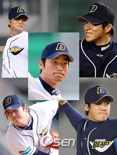 [OSEN=박종규 객원기자] 선발 투수진 붕괴에 타선 약화까지 겹친 두산, 다행히 ‘SKILL 라인’ 투수들이 있어 버티고 있다. 두산 베어스의 투수진이 갈수록 어려움에 직면하고 있다. 6월 초까지 든든한 선발 투수로 활약했던 정재훈이 어깨 통증으로 1군에서 제외됐고, 지난 2일에는 선발에서 중간계투로 자리를 옮겼던 김상현이 부진에 빠져 2군으로 강등됐다. 시즌 개막을 함께한 4명의 선발 투수 중 김선우만이 살아남은 상태. 그러나 김선우마저도 들쭉날쭉한 모습이다. 6승을 거뒀지만, 6패와 평균자책점 4.59라는 성적 때문에 믿음을 주지 못한다. 위안거리가 있다면 ‘KILL 라인’ 이라 불리는 투수들이 시즌 초부터 지금까지 굳건하게 버티고 있다는 점이다. 고창성(K)은 38경기에서 47⅓이닝을 던지며 평균자책점 1.71을 기록하고 있다. 임태훈(I)은 하루가 멀다 하고 등판해 2~3이닝까지도 책임진다. 다승 공동선두(10승)는 결코 운이라고 볼 수 없다. 새내기 마무리 이용찬(L)도 강심장을 자랑하며 구원 부문 1위를 다툰다. 중간계투로서의 ‘L’ 이었던 이재우는 어느새 선발 투수진에 없어서는 안 될 존재가 됐다. 지난달 21일부터 선발 투수로 나선 이재우는 지난 2일까지 3차례 선발 등판에서 점점 나아지는 모습을 보이고 있다. 중간계투 때와 달리 힘의 배분과 완급조절을 익히고 있고, 직구-포크볼 중심의 패턴에서 슬라이더와 커브 구사 비율을 높이고 있다. 특히 지난 2일 목동 히어로즈전에서는 칼날 제구력까지 선보이며 확실한 선발 투수로 자리매김했다. 낮은 코스에 꽂히는 직구는 중간계투 시절의 위력에 버금갔고, 2스트라이크 이후 포크볼 대신 몸 쪽 직구를 던지자 상대 타자들은 꼼짝없이 당했다. 최근 두산에는 KILL 라인에 버금가는 믿음을 주는 투수가 있다. 바로 고졸 2년차 선발투수 홍상삼이다. 지난 5월 2일 사직 롯데전에서 5이닝 7삼진 1실점으로 프로 데뷔 무대를 화려하게 장식하며 ‘신데렐라’ 로 떠올랐다. 이후로 꾸준히 선발 로테이션을 지킨 홍상삼은 벌써 7승(1패)을 거뒀다. 홍상삼은 지난달 30일 경기에서도 초반 제구력 불안을 극복하고 7승째를 따낸 바 있다. 공 하나하나 혼신의 힘을 다해 던지는 모습이 인상적이다. 무엇보다도 홍상삼이 등판한 12경기 중 11경기에서 두산이 승리했다는 점이 눈에 띈다. 사실 현재 두산에서 믿음을 주는 투수들은 이들 5명이 전부라 해도 과언이 아니다. 이들을 한 데 묶으려면 신조어 ‘SKILL’ 이 알맞을 듯 하다. 편의상 홍상삼의 이니셜 H 대신 S(삼)를 따면 단어가 형성되기 때문이다. 김동주, 최준석의 공백으로 타선의 파괴력이 떨어진 데다 이종욱의 공백까지 겹쳐 리드오프 부재를 절실히 느끼는 두산. 떨어지는 타선의 힘을 마운드에서 메워줄 수 있을까. 해답은 SKILL 라인에게서 찾아야 할 전망이다. 가운데 홍상삼, 우측 상단부터 시계방향으로 고창성-이용찬-임태훈-이재우