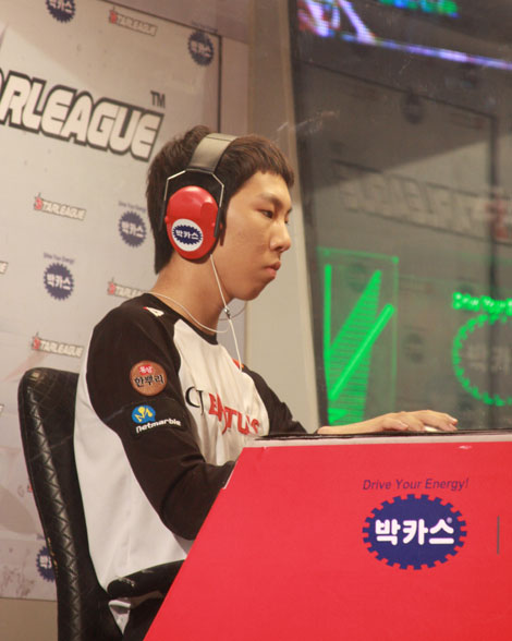 "그냥 열심히 했을 뿐이다'. 2009년 최고 저그 기대주 김정우가 자신의 진가를 스타리그 16강 생애 첫 승으로 입증했다. 김정우는 3일 서울 용산 e스포츠 상설경기장에서 열린 스타리그 2009 16강 4회차 박명수와의 경기에서 날카로운 공격을 선보이며 스타리그 16강 첫 승을 신고했다. 김정우-박명수 두 선수 12드론 투 해처리 체제를 선택하며 부유스럽게 출발했다. 그러나 김정우는 속도 업그레이드 이후 저글링을 빠르게 생산하며 변수를 뒀다. 이점은 기막히게 적중했다. 뮤탈리스크 교전 중 김정우의 속도 업그레이드 저글링은 박명수의 본진 드론 사냥에 성공하며 승리의 발판을 마련했다. 박명수의 역공으로 김정우는 앞마당을 잃었지만 이미 공중의 우위를 점한 상황서 상대 뮤탈리스크를 몰살시키며 항복을 받아냈다. 경기 후 인터뷰서 김정우는 "경기에 앞서 긴장을 많이 했다. 또 상대랑 빌드가 같아서 경기를 하면서 많이 놀랐다. 열심히 했을 뿐인데 운이 약간 따르면서 승리할 수 있었다"라고 승리한 소감을 밝혔다. 이억 그는 "다음 상대가 최고의 테란이라고 불리는 이영호다. 만반의 준비를 해야 겠지만 열심히 해서 8강 진출을 꼭 해내고 싶다"고 각오를 전했다. ◆박카스 스타리그 2009 16강 4회차 김정우(저, 11시) 승 박명수(저, 5시) scrapper@osen.co.kr 온미디어 제공.