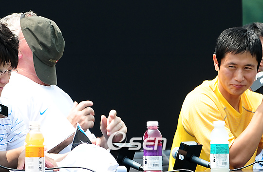 세계적인 명장 거스 히딩크 (Gus hiddink, 62)와 이영표(32, 도르트문트) 선수가 참여한 '나이키 파이브 5대5 축구 클리닉' 행사가 4일 오후 경기도 용인시 축구센터에서 열렸다. 이번 축구 클리닉에서 히딩크 감독은 5대5 경기의 승부를 결정지을 수 있는 네 가지 기술인 '터치, 정확성, 스피드, 민첩성'을 키우기 위한 훈련을 실시함과 동시에 축구 꿈나무들에게 훌륭한 축구선수가 되기 위한 희망과 격려의 메시지도 전달했다. 또한 히딩크 감독은 이영표 선수와 함께 각각 5명으로 이루어진 팀을 맡아 승부를 겨뤄 스승과 제자 사이에 흥미지진한 코칭 대결을 펼쳤다. 이영표 선수팀이 히딩크 감독팀에 1-0으로 승리를 거두자 히딩크 감독이 얼굴을 모자로 덮으며 실망하고 있다. /용인=민경훈 기자 rumi@osen.co.kr