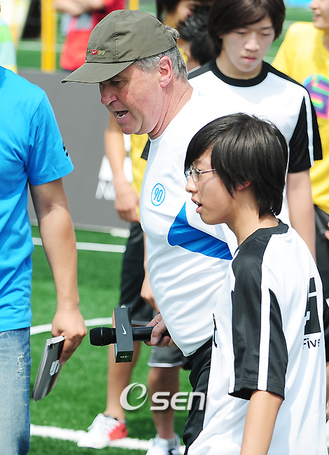 세계적인 명장 거스 히딩크 (Gus hiddink, 62)와 이영표(32, 도르트문트) 선수가 참여한 '나이키 파이브 5대5 축구 클리닉' 행사가 4일 오후 경기도 용인시 축구센터에서 열렸다. 이번 축구 클리닉에서 히딩크 감독은 5대5 경기의 승부를 결정지을 수 있는 네 가지 기술인 '터치, 정확성, 스피드, 민첩성'을 키우기 위한 훈련을 실시함과 동시에 축구 꿈나무들에게 훌륭한 축구선수가 되기 위한 희망과 격려의 메시지도 전달했다. 또한 히딩크 감독은 이영표 선수와 함께 각각 5명으로 이루어진 팀을 맡아 승부를 겨뤄 스승과 제자 사이에 흥미지진한 코칭 대결을 펼쳤다. 히딩크 감독이 꿈나무 훈련중 심각한 표정으로 '빨리 빨리'를 외치고 있다./용인=민경훈 기자 rumi@osen.co.kr