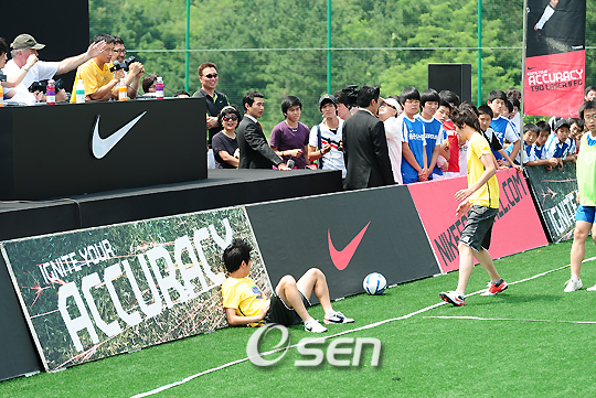 세계적인 명장 거스 히딩크 (Gus hiddink, 62)와 이영표(32, 도르트문트) 선수가 참여한 '나이키 파이브 5대5 축구 클리닉' 행사가 4일 오후 경기도 용인시 축구센터에서 열렸다. 이번 축구 클리닉에서 히딩크 감독은 5대5 경기의 승부를 결정지을 수 있는 네 가지 기술인 '터치, 정확성, 스피드, 민첩성'을 키우기 위한 훈련을 실시함과 동시에 축구 꿈나무들에게 훌륭한 축구선수가 되기 위한 희망과 격려의 메시지도 전달했다. 또한 히딩크 감독은 이영표 선수와 함께 각각 5명으로 이루어진 팀을 맡아 승부를 겨뤄 스승과 제자 사이에 흥미진진한 코칭 대결을 펼쳤다. 히딩크 감독이 이영표 옆에서 경기 중 자신의 팀 선수를 꾸짖고 있다./용인=민경훈 기자 rumi@osen.co.kr