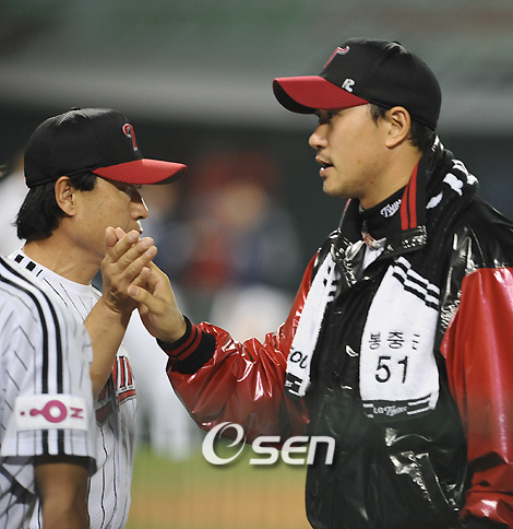 아직 만족할만한 수준은 아니다. 하지만 수렁에서 헤맬 때보다는 훨씬 안정적이다. 2군에서 올라올 마땅한 지원군도 없는 현실정에서 그나마 최상의 카드로 조합이 돼가고 있다. LG 트윈스가 안정화돼가고 있는 선발진을 앞세워 다시 ‘4강 싸움’에 불을 붙이고 있다. LG는 두산 베어스와의 잠실 라이벌전에서 투타 합작으로 2연속 완승을 거뒀다. 2게임 연속 두자릿수 득점을 올린 타선의 활약도 돋보였지만 선발 투수들의 쾌투도 반가웠다. 3일 경기선 올 시즌 최고의 좌완 투수로 인정받고 있는 봉중근이 8이닝 1실점으로 에이스 체면을 지켰고 4일 경기서는 제5선발인 우완 김광수가 7이닝 2실점으로 제몫을 다하며 6년만의 선발승을 따내는 기염을 토했다. 선발 투수들이 퀄리티스타트(6이닝 이상에 3자책 이하 투구)를 기록하며 임무를 완수하면서 편안한 승리가 따라오고 있는 것이다. 에이스 봉중근의 호투가 계속되고 있는 가운데 김광수의 재발견이 LG로서는 큰 소득이다. 김광수가 최근 선발 등판에서 안정된 투구를 펼치면서 LG 선발진은 에이스 봉중근을 축으로 우완 투수들인 심수창-정재복-바우어-김광수로 ‘5선발 체제’가 자리를 잡고 있다. 방어율 1위인 봉중근과 ‘원투펀치’를 이루고 있는 심수창이 최근 주춤하고 있지만 정재복, 바우어, 김광수가 살아나고 있어 고무적이다. 대체선발 요원들인 바우어와 김광수가 갈수록 안정된 투구를 펼치고 있어 희망을 가질만 하다. ‘4강 진입’에 사활을 걸고 있는 LG로서는 상대적으로 약한 불펜진보다는 선발진이 7이닝 이상을 버텨주어야만 승산이 있다. 때문에 LG 선발 투수들은 매경기 퀄리티스타트를 기록해야 승리 가능성이 높은 것이다. 현재까지는 2군 재활군의 지원도 기대할 수 없다. 왕년의 에이스 박명환은 햄스트링으로 아직도 재활 중이고 발목을 다쳐 내려간 베테랑 선발 최원호도 더딘 회복세이다. 그리고 내야수 김상현을 내주고 KIA에서 받은 우완 기대주 강철민은 이제야 불펜 피칭에 들어가는 단계로 1군 합류는 시간이 걸린다. 따라서 선발 로테이션을 ‘이없으면 잇몸’으로 버티고 있는 LG로서는 최근 선발 투수들이 기대에 걸맞는 투구를 보여주고 있어 4강행 희망을 품고 있다. sun@osen.co.kr LG 선발진의 축인 봉중근과 그의 호투를 격려하고 있는 김재박 감독