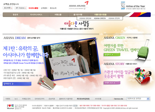 주제별 커뮤니케이션 채널 신설 … 고객과의 소통 강화 아시아나항공(OZ)이 지난 1일 새롭게 개편된 메인 홈페이지(www.flyasiana.com)를 선보였다. 아시아나는 그동안 메인 홈페이지와 레이디아시아나, 아시아나리틀즈, 싸이월드 등 4개로 운용되던 홈페이지를 하나의 메인 홈페이지로 통합, 고객들이 보다 편리하게 이용할 수 있도록 했다. 개편된 아시아나 홈페이지의 가장 큰 특징은 심플한 구성으로 고객이 원하는 정보를 보다 쉽게 확인할 수 있도록 했다는 점. 특히 꿈, 사랑, 희망을 나누고 이야기하는 드림(Dream), 그린(Green), 스토리(Story)의 세 가지 주제별 커뮤니케이션 채널을 신설해 홈페이지를 통한 고객과의 쌍방향 커뮤니케이션 강화에 초점을 맞췄다. 드림(Dream)은 각계 각층의 꿈을 이루고자 하는 고객에게 아시아나가 든든한 후원을 하는 서비스로, 매 분기별로 특별한 주제의 꿈에 대해 소개하는 채널이다. 첫번째는 유학의 꿈을 갖고 있는 주인공을 선정해 유학 준비 과정을 스토리텔링 형식으로 전달할 예정이다. 그린(Green)은 ‘지구야, 사랑해!’라는 슬로건 아래 여행 시 환경보존을 위해 13가지 실천 사항을 담은 ‘아시아나 그린 트래블(Asiana Green Travel)’ 캠페인을 실시하는 등 환경과 관련된 여러 가지 내용을 안내한다. 스토리(Story)는 이웃에게 따뜻한 사랑과 희망을 전하는 채널로 훈훈한 사회공헌 이야기 및 아시아나항공을 이용한 유명인사의 이야기를 제공한다. 한편 아시아나항공은 이번 홈페이지 개편을 기념해 다양한 이벤트를 진행한다. 드림(Dream)에서는 유학의 꿈을 내용으로 사연을 보낸 고객 중 3명을 선정해 국제선 왕복항공권을 제공하고, 그린(Green)에서는 아시아나 그린 트래블 캠페인에 동참한 회원을 대상으로 친환경 USB 및 에코백(Eco-Bag)을 제공한다. 또한 홈페이지의 신규 서비스 관련 설문에 참여한 회원을 대상으로 선착순 1만5000명에게 사진 인화권을 제공하며, 추첨을 통해 250여개의 숙박권, 식사권, 공연 초대권 등의 경품을 제공한다. 이와 더불어 오는 18일부터 인천출발 국제선 항공편을 탑승하는 어린이 탑승객에게는 색동이 스티커북 5000개를 선착순으로 배포할 예정이다. (주)여행미디어 박은경 기자 www.tourmedia.co.kr