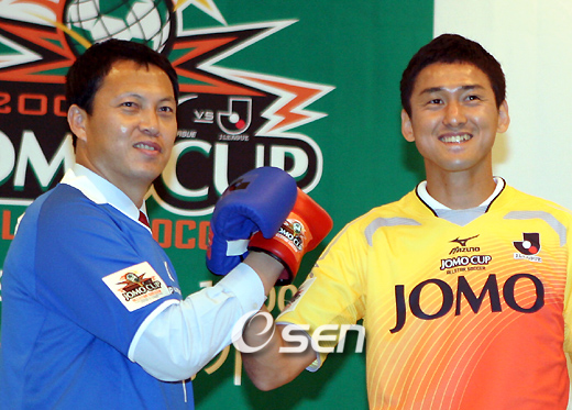 "컨디션이 나빴으면 좋겠다" VS "무조건 2연승한다". 한국과 일본의 프로축구 교류전인 '조모컵 2009' 출전 선수 발표 기자회견이 6일 서울 홍은동 그랜드 하얏트 호텔에서 개최됐다. K리그와 J리그 대표선수로 참석한 이운재(수원)와 이정수(교토)는 재미있는 말솜씨와 퍼포먼스로 기자회견을 생기 넘치게 만들었다. 지난해 K리그 올스타의 최선참 선수로 승리를 이끌어낸 이운재는 "지난해에도 조모컵에 출전해 영광이었다. 한국에서 하는 조모컵에 출전해 다시 너무 기쁘다"면서 "K리그 올스타가 일본에 가서 좋은 결과를 가지고 돌아왔다. 그 여세를 몰아 홈에서 K리그가 강하다는 모습과 이기는 모습을 보여줄 수 있도록 하겠다"고 승리에 대한 강한 의지를 나타냈다. J리그 대표로 참가한 이정수는 "지난해에 이어 팀은 바뀌었지만 다시 참가하게 되어 너무 기쁘다"면서 "올해는 J리그 대표로 참가하기 때문에 소속으로 최선을 다하겠다"고 설명했다. 또 이정수는 J리그서 경계해야 할 선수를 꼽아달라는 질문에 "(이)운재 형의 컨디션이 경기 당일 나빠졌으면 좋겠다"고 답했다. 한편 이운재와 이정수는 유니폼을 입고 포즈를 취함과 동시에 대회 관계자가 권투 글러브를 끼고 포즈를 취해 달라고 하자 서로에게 주먹을 겨누는 퍼포먼스를 하는 등 기분좋게 기자회견을 마무리했다. 10bird@osen.co.kr