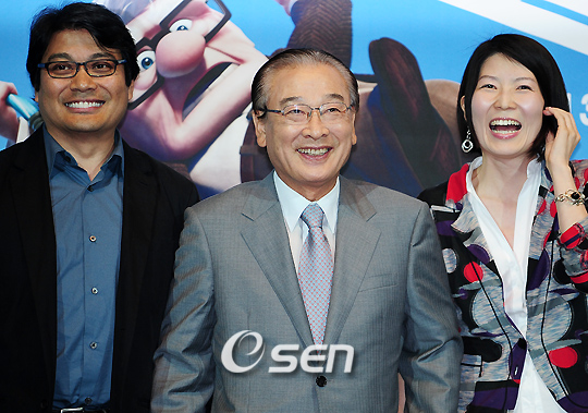 올 칸 국제영화제 개막작으로 선정된바 있는 애니메이션 영화 '업(UP, 30일 개봉예정)'의 언론 시사회가 6일 서울 코엑스 메가박스에서 열렸다. 이 자리에는 주인공 칼 프레드릭슨의 성우를 맡은 배우 이순재와 영화의 스토리 수퍼바이저로 참여한 로니 델 카르멘(Ronnie Del Carmen), 영화의 조명을 맡은 한국계 조예원 조명감독이 함께 참석했다. 이미 북미권에서 큰 호평을 받으며 흥행에 성공하고 있는 이 영화는 디즈니-픽사 스튜디오에서 만든 3D 애니메이션으로 78세의 노인 칼 프레드릭슨이 풍선으로 집을 띄워 남미로 날아가는 모험에 8살 난 꼬마 불청객 러셀이 합류하며 벌어지는 소동과 둘의 우정을 그린 작품이다. 기자회견을 마치고 로니 델 카르멘, 이순재, 조예원이 포토타임을 갖고 있다. /민경훈 기자 rumi@osen.co.kr