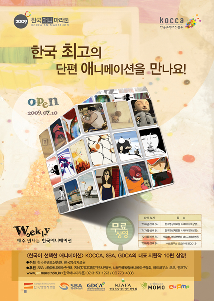 한국콘텐츠진흥원이 10일부터 국산애니메이션 상시영화제인 을 개최한다. 한국콘텐츠진흥원 한 관계자는 “7월부터 매월 각각의 테마에 따라 월례로 상영되는 은 국산 단편애니메이션의 중흥과 그를 통한 애니메이션산업의 저변확대를 도모하고자 기획됐다”고 밝혔다. 매년 국내에서 제작되는 단편애니메이션은 약 300편에 달하는 것으로 추산되고 있으나 상영공간의 부족으로 대부분의 작품들이 일반대중과 만나지 못한 채 사장되어가고 있다. 단편 애니메이션은 그 실험성과 다양성으로 애니메이션 문화의 뿌리가 되며 산업적 성장의 초석이 되는 중요한 장르이나 그 상업적 한계성으로 영상시장에서 불리한 위치에 놓여있는 실정이다. 이에 한국콘텐츠진흥원을 주최로 모인 한국영상자료원, SBA서울애니메이션센터, 경기디지털콘텐츠진흥원(이하 GDCA), 아트하우스 모모, 챔프TV 등은 한국의 우수한 단편애니메이션을 매주 1회 상영하는 파격적인 상시 상영회를 기획했다. 오는 10일에 한국영상자료원 시네마테크에서 첫 상영회를 갖는다. 이번 7월 주제는 으로, 국내의 3대 애니메이션 지원기관인 한국콘텐츠진흥원, SBA서울애니메이션센터, 경기디지털콘텐츠진흥원의 지원작 중에서 엄선한 애니메이션들을 한 자리에서 상영한다. 이번 상영회에는 특히 2009 칸 국제영화제 공식초청작인 정유미 감독의 ‘먼지아이(Dust Kid)’를 비롯하여 2009 신동헌 애니메이션어워드 특별상과 2009 SBS 창작애니메이션대상 대상을 수상한 오수형 감독의 ‘웨이홈(Wayhome)’, 2009 SBS 창작애니메이션대상 최우수상을 수상한 박지연 감독의 ‘그녀가 도시에서 피할 수 없는 것들’ 등이 상영된다. 연중 진행되는 은 매주 시네마테크 KOFA(상암동), 서울애니시네마(명동), 아트하우스 모모(신촌) 등에서 순회 상영된다. 모든 상영은 무료관람이며 현지관객 투표를 통해 매월 상영작 중 우수작품을 선정하여 시상할 예정이다. crystal@osen.co.kr