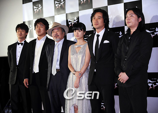 엄태웅, 정유미, 장항선, 윤제문, 박혁권이 출연하고 신정원 감독이 메가폰을 잡은 영화 '차우' 시사회가 7월16일 개봉을 앞두고 8일 충무로 대한극장에서 열렸다. 잔혹한 식인 멧돼지의 인간 사냥 습격을 다룬 영화 '차우'는 한국최초 리얼괴수 어드벤처 영화로 7월 더위를 사냥할 오락 영화이다. 출연진이 포토타임을 갖고 있다./김영민 기자 ajyoung@osen.co.kr