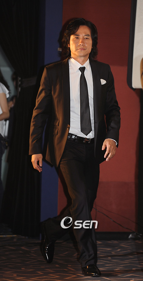 엄태웅, 정유미, 장항선, 윤제문, 박혁권이 출연하고 신정원 감독이 메가폰을 잡은 영화 '차우' 시사회가 7월16일 개봉을 앞두고 8일 충무로 대한극장에서 열렸다. 잔혹한 식인 멧돼지의 인간 사냥 습격을 다룬 영화 '차우'는 한국최초 리얼괴수 어드벤처 영화로 7월 더위를 사냥할 오락 영화이다. 엄태웅이 포토타임 장소로 이동하고 있다./김영민 기자.ajyoung@osen.co.kr