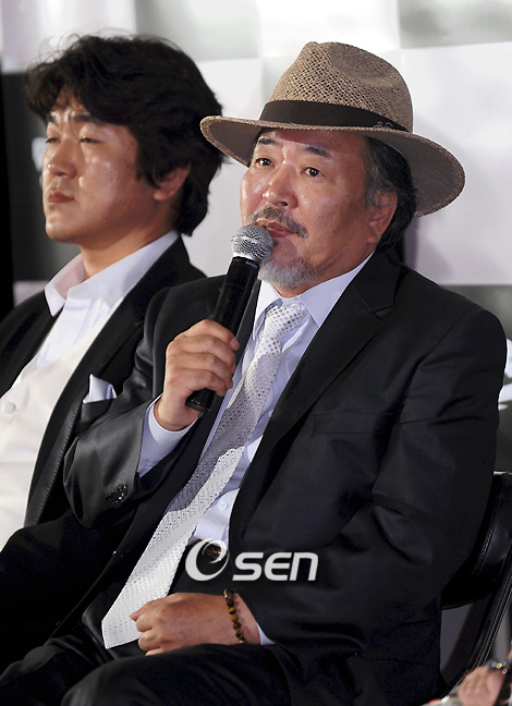 엄태웅, 정유미, 장항선, 윤제문, 박혁권이 출연하고 신정원 감독이 메가폰을 잡은 영화 '차우' 시사회가 7월16일 개봉을 앞두고 8일 충무로 대한극장에서 열렸다. 잔혹한 식인 멧돼지의 인간 사냥 습격을 다룬 영화 '차우'는 한국최초 리얼괴수 어드벤처 영화로 7월 더위를 사냥할 오락 영화이다. 장항선이 관객에게 웃음을 줄수 있는 영화라며 이야기를 하고 있다./김영민 기자.ajyoung@osen.co.kr