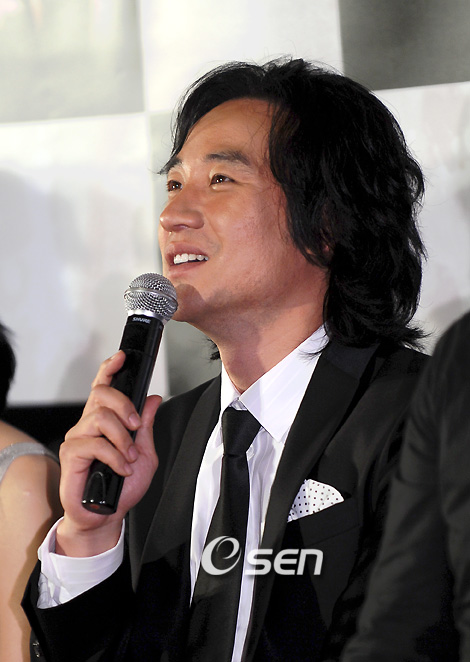 엄태웅, 정유미, 장항선, 윤제문, 박혁권이 출연하고 신정원 감독이 메가폰을 잡은 영화 '차우' 시사회가 7월15일 개봉을 앞두고 8일 충무로 대한극장에서 열렸다. 잔혹한 식인 멧돼지의 인간 사냥 습격을 다룬 영화 '차우'는 한국최초 리얼괴수 어드벤처 영화로 7월 더위를 사냥할 오락 영화이다. 엄태웅이 멧돼지 CG를 못본 상태에서 연기하기가 힘들었다며 이야기를 하고 있다./김영민 기자.ajyoung@osen.co.kr