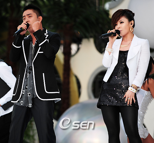 'Mnet 엠카운트다운' 생방송이 9일 오후 경기도 부천시 원미구 중동 부천 중앙 공원에서 제13회 부천국제판타스틱영화제(16일-26일) 개막기념 행사로 치뤄졌다. 이 날 수 많은 관중 앞에서 포미닛(4Minute) 원투(ONE2) 길미 문희준 2AM M(이민우) 케이윌(K.will) 채연 코요태 박정현 다비치 등 국내 정상급 가수들이 화려한 공연을 선보였다. 길미가 은지원과 함께 노래'Love Cuts'를 열창하고 있다./민경훈기자 rumI@osen.co.kr