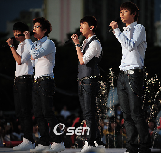 'Mnet 엠카운트다운' 생방송이 9일 오후 경기도 부천시 원미구 중동 부천 중앙 공원에서 제13회 부천국제판타스틱영화제(16일-26일) 개막기념 행사로 치뤄졌다. 이 날 수 많은 관중 앞에서 포미닛(4Minute) 원투(ONE2) 길미 문희준 2AM M(이민우) 케이윌(K.will) 채연 코요태 박정현 다비치 등 국내 정상급 가수들이 화려한 공연을 선보였다. 2AM이 노래 '일단 돌아서지만'을 열창하고 있다./민경훈기자 rumI@osen.co.kr