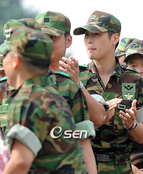가수 싸이가 11일 오전 국방부 국방홍보원 홍보지원대에서 군생활을 마치고 제대하였다. 싸이는 지난 2003년 1월부터 산업기능요원으로 35개월간 군복무를 마친 뒤 부실복무 판정을 받고 지난 2007년 12월17일 재입대해 육군 52사단에서 근무하다가 올 1월부터 국방부 국방홍보원 홍보지원대 연예병사로 복무했다. 김재원이 전역을 한 싸이를 배웅하고 있다./윤민호 기자ymh@osen.co.kr